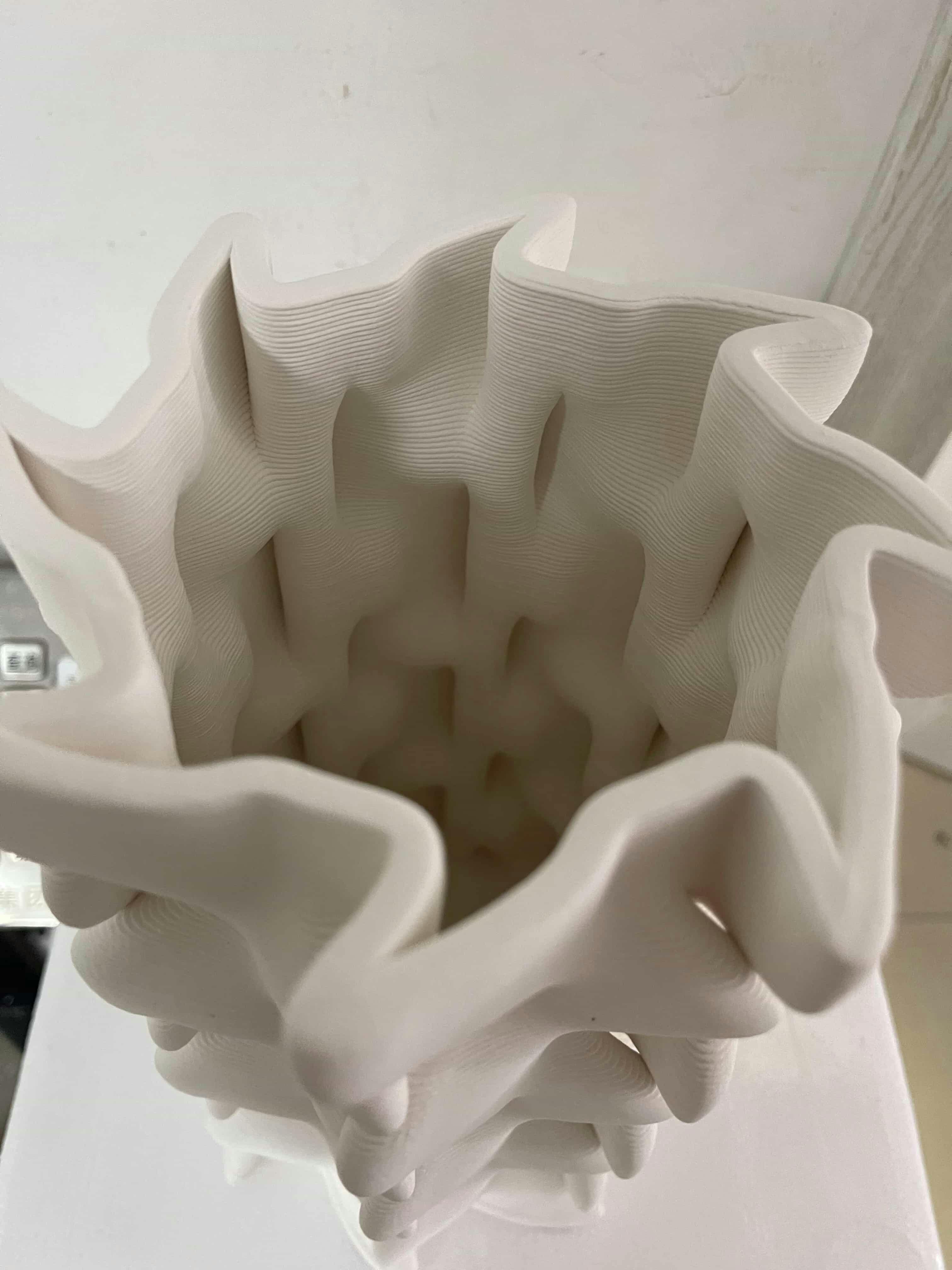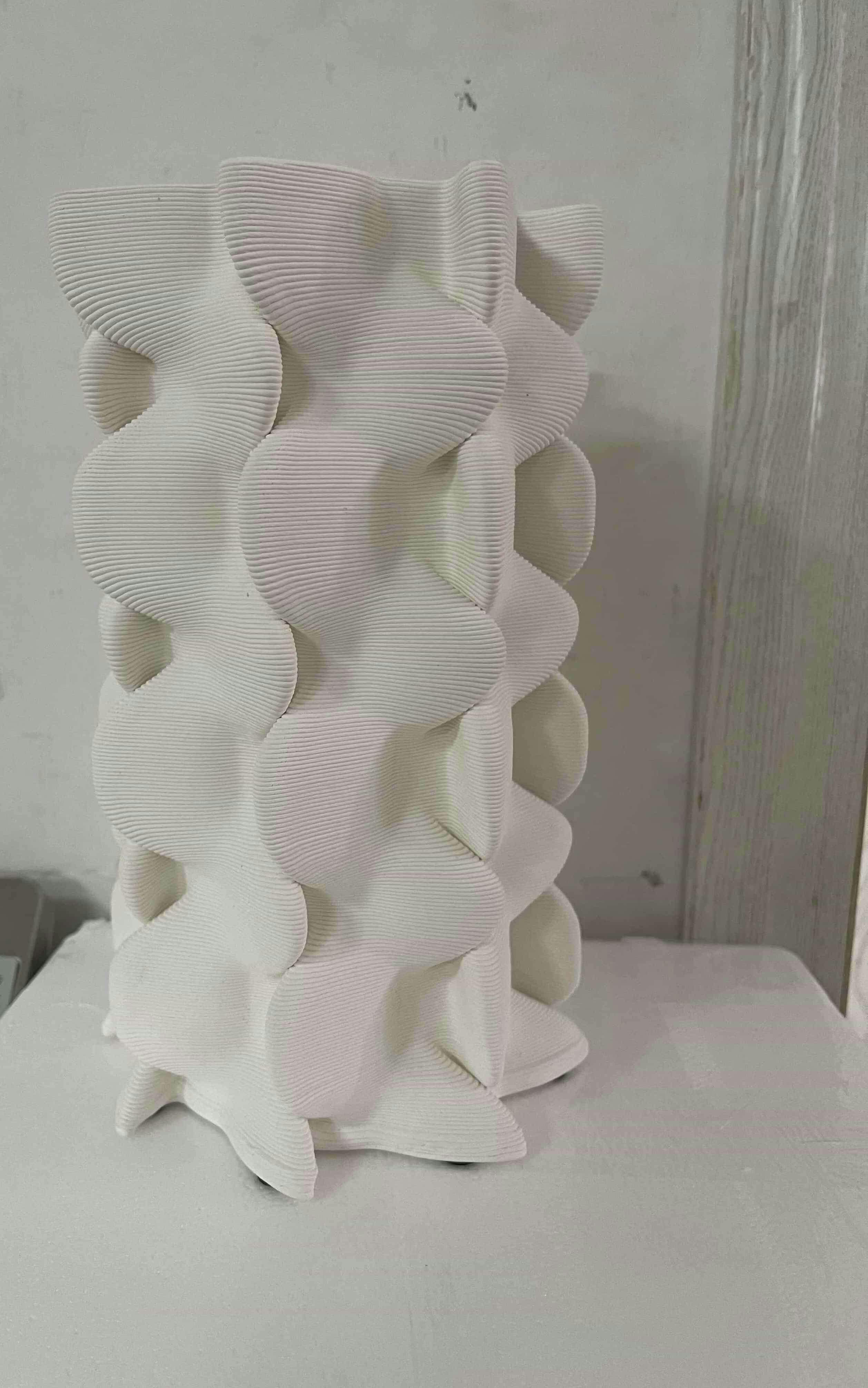 This striking contemporary Mirabelle ceramic vase showcases an intricate scalloped silhouette that transforms any space with architectural elegance. Each graceful curve and undulating edge has been carefully crafted to create a sculptural piece that commands attention whether displayed alone or as part of a curated collection. The distinctive scalloped profile catches and plays with light throughout the day, creating ever-changing shadows that add depth and visual interest to your interior.