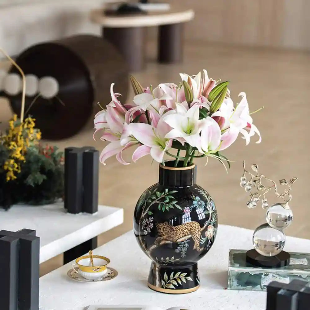 Verdant Ceramic Tabletop Vase – Handcrafted Sculptural Design Black 34 cm