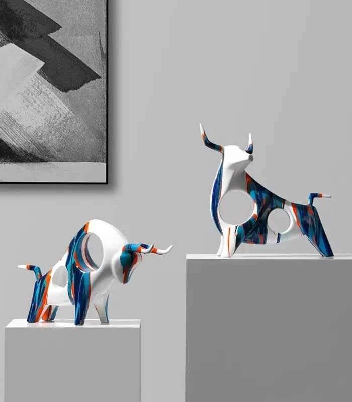 Bulls have been revered for centuries for their strength and beauty. This sculpture captures their powerful and elegant essence, making it a captivating focal point in any room. With its sleek post-modern design, the sculpture evokes a sense of strength and movement. Despite its lightweight construction, the piece radiates with a glossy and vibrant paint finish.