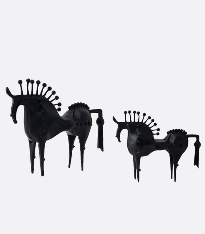 Introducing our stunning Metal Horse Sculpture, a masterpiece of artistry and craftsmanship that celebrates the majestic beauty of horses. This exquisite sculpture is available in two size options and is impressively crafted from cast iron, making it a durable and long-lasting addition to your decor. Our talented artisans have meticulously crafted this sculpture, using a mix of complex crafting processes to bring it to life. Each sculpture is a one-off creation, ensuring that you receive a unique and special piece that is truly one-of-a-kind.